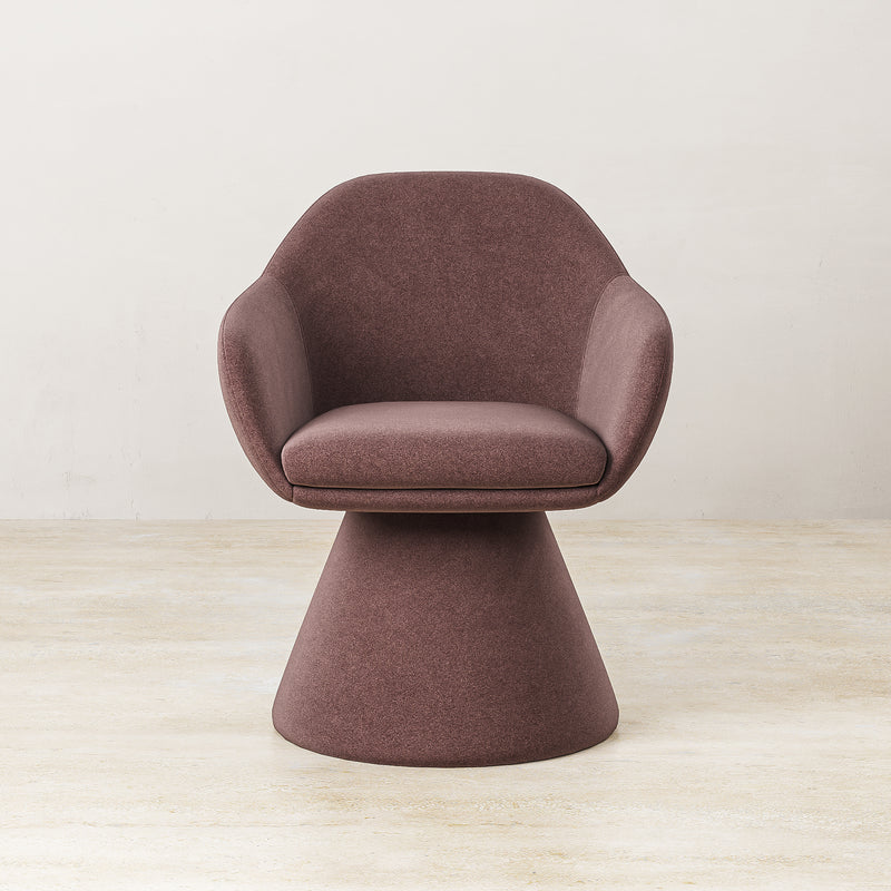 The Lavini swivel dining chair epitomises modern elegance with its sleek, conical base that adds a touch of contemporary sophistication to any dining space. Upholstered in sumptuous faux mohair, the chair offers an invitingly plush seat, exuding both comfort and refined style. Its gracefully curved backrest and seamless swivel mechanism provide effortless mobility and support, making it a distinguished and practical centerpiece for any upscale dining area.